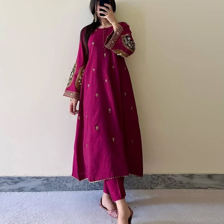 What truly sets this frock apart is the special handmade stitching across the entire 2-piece set. From delicate threadwork on the shirt to the coordinated detailing on the matching trousers, every stitch is carefully crafted to ensure perfection, durability, and a luxurious feel.